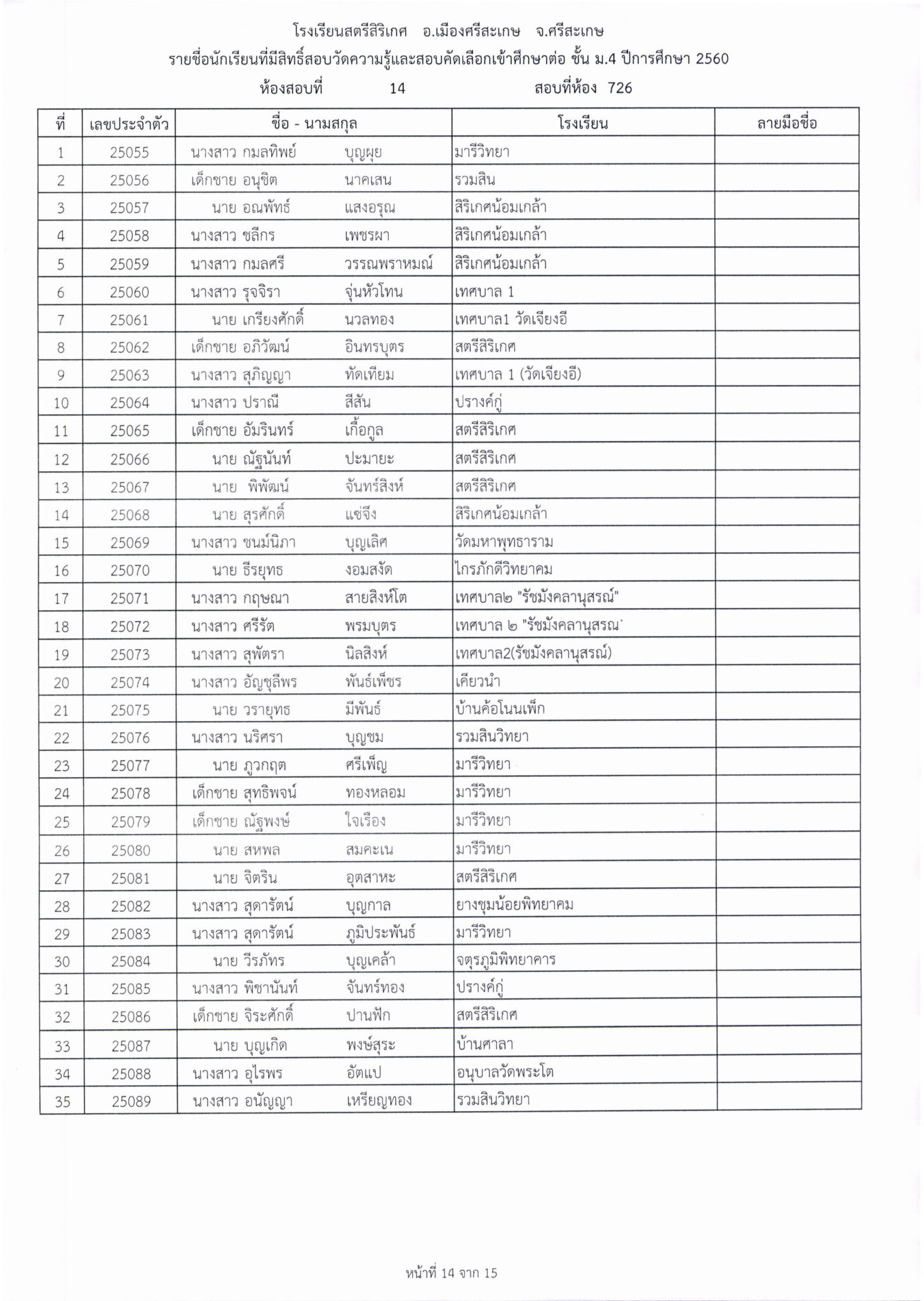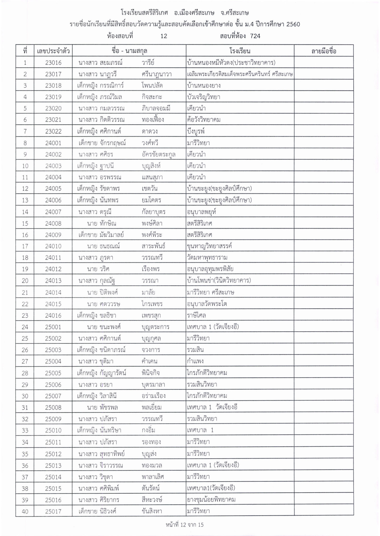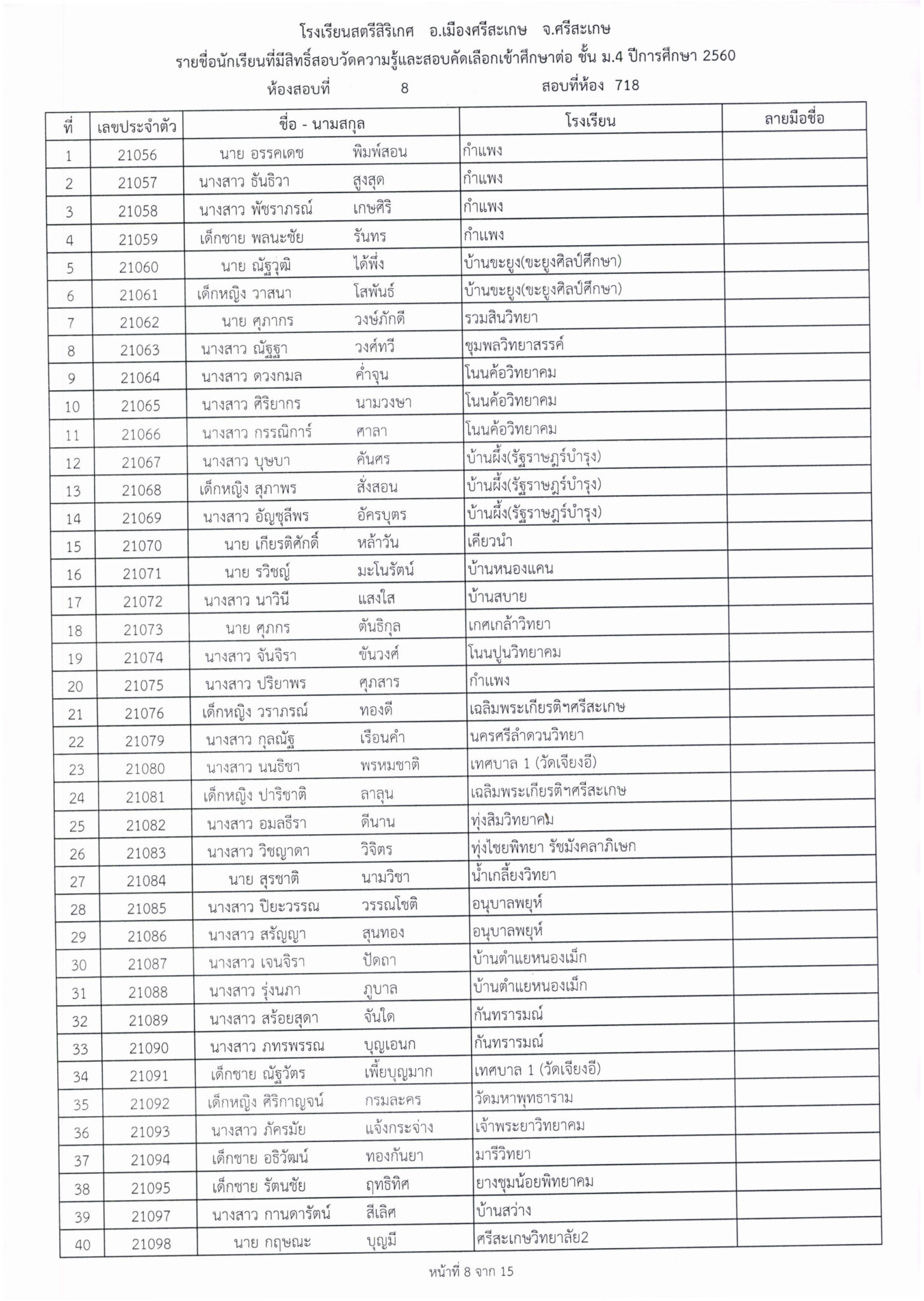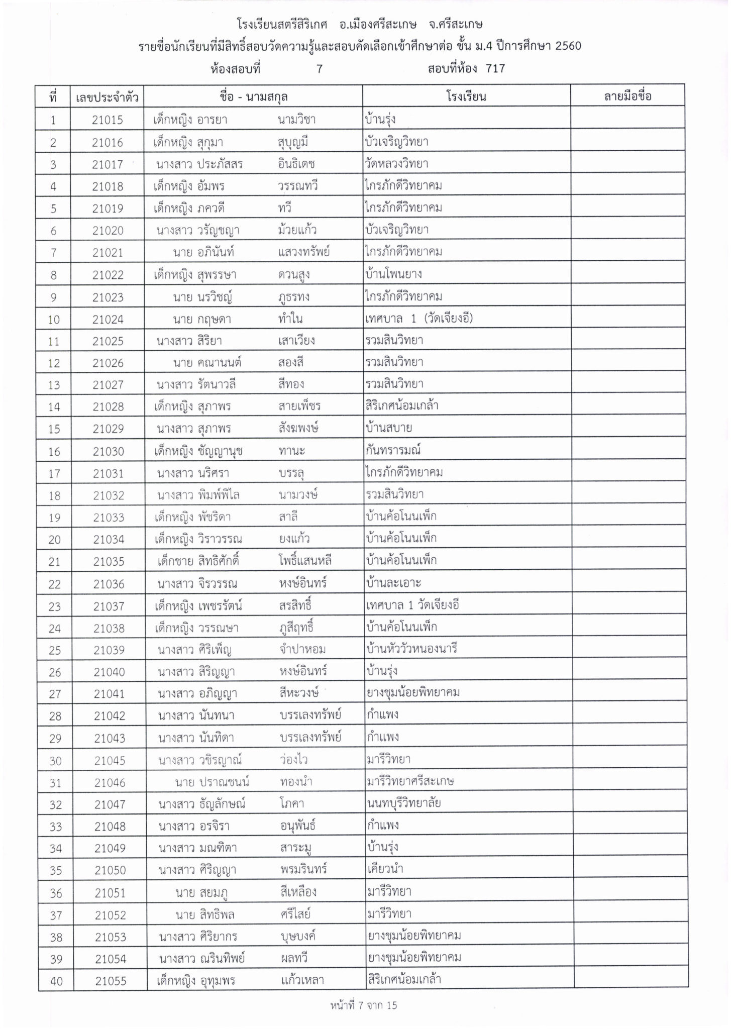 โรงเรียนสตรีสิริเกศ อำเภอเมือง จังหวัดศรีสะเกษ