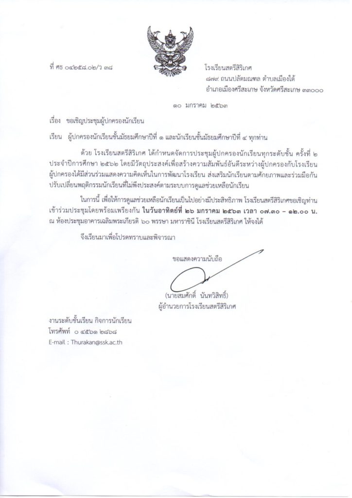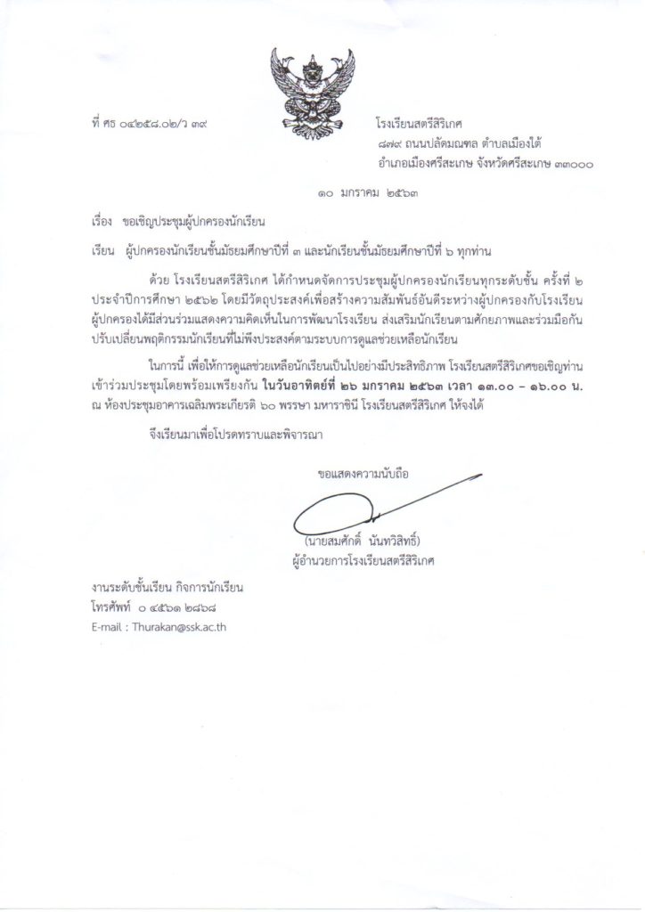 ประชุมผู้ปกครอง ภาคเรียนที่ 2 ปีการศึกษา 2562