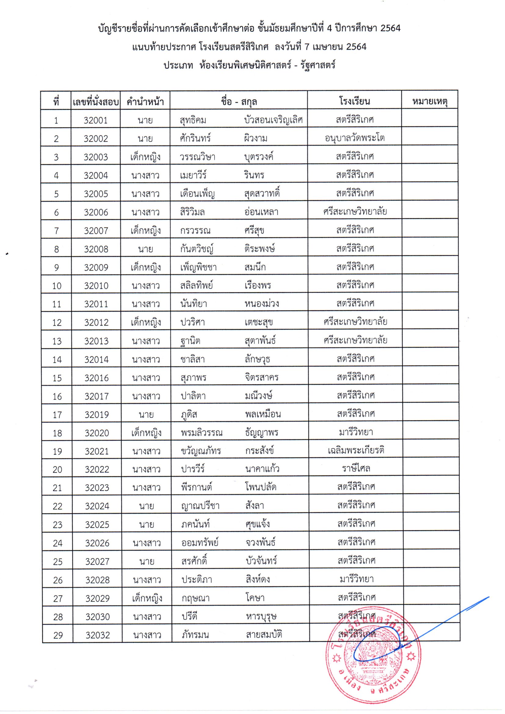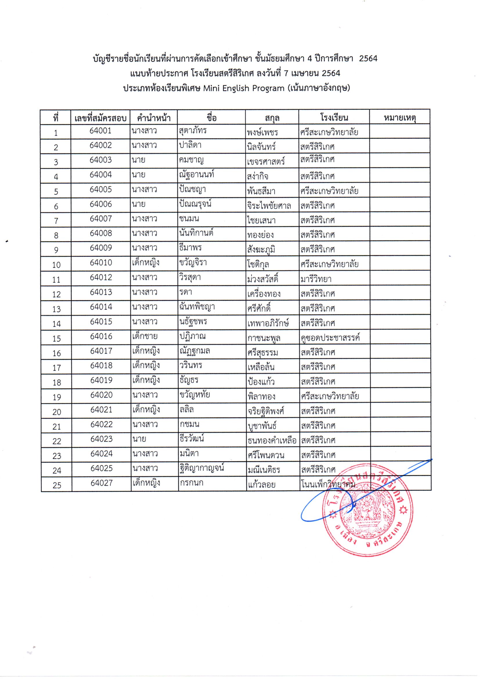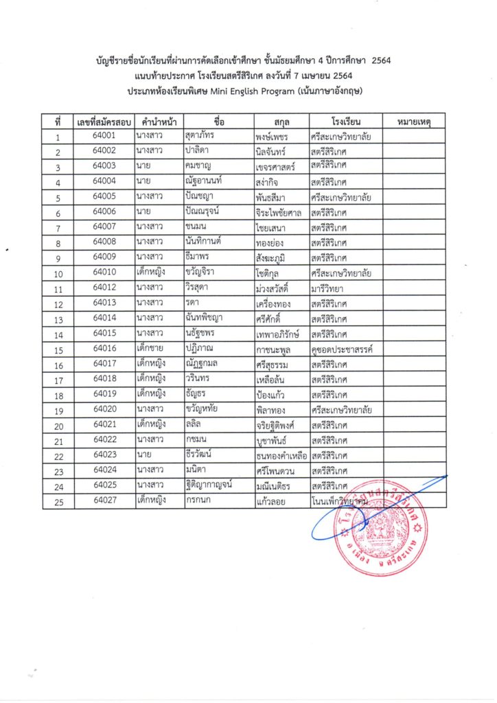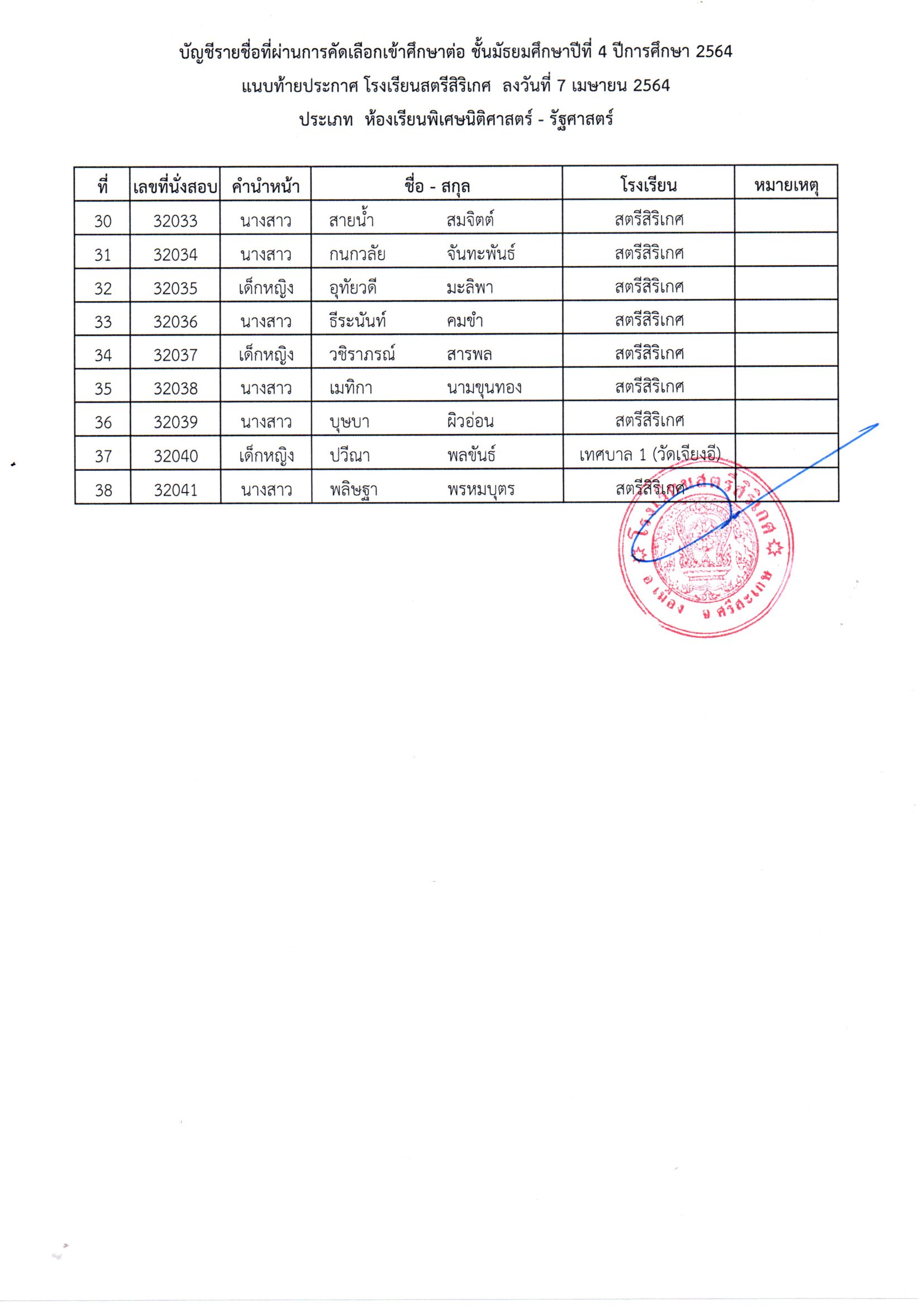 โรงเรียนสตรีสิริเกศ อำเภอเมือง จังหวัดศรีสะเกษ