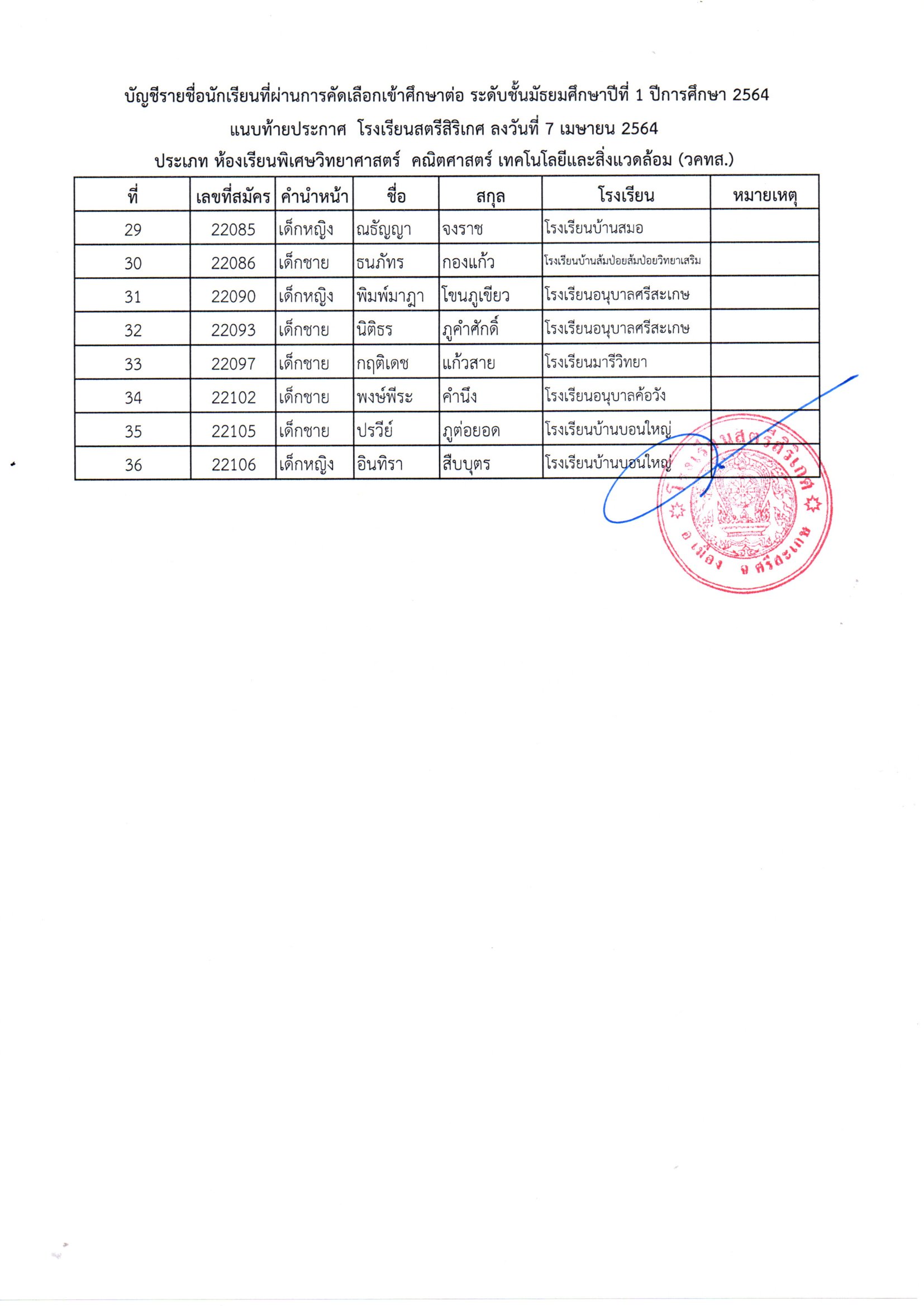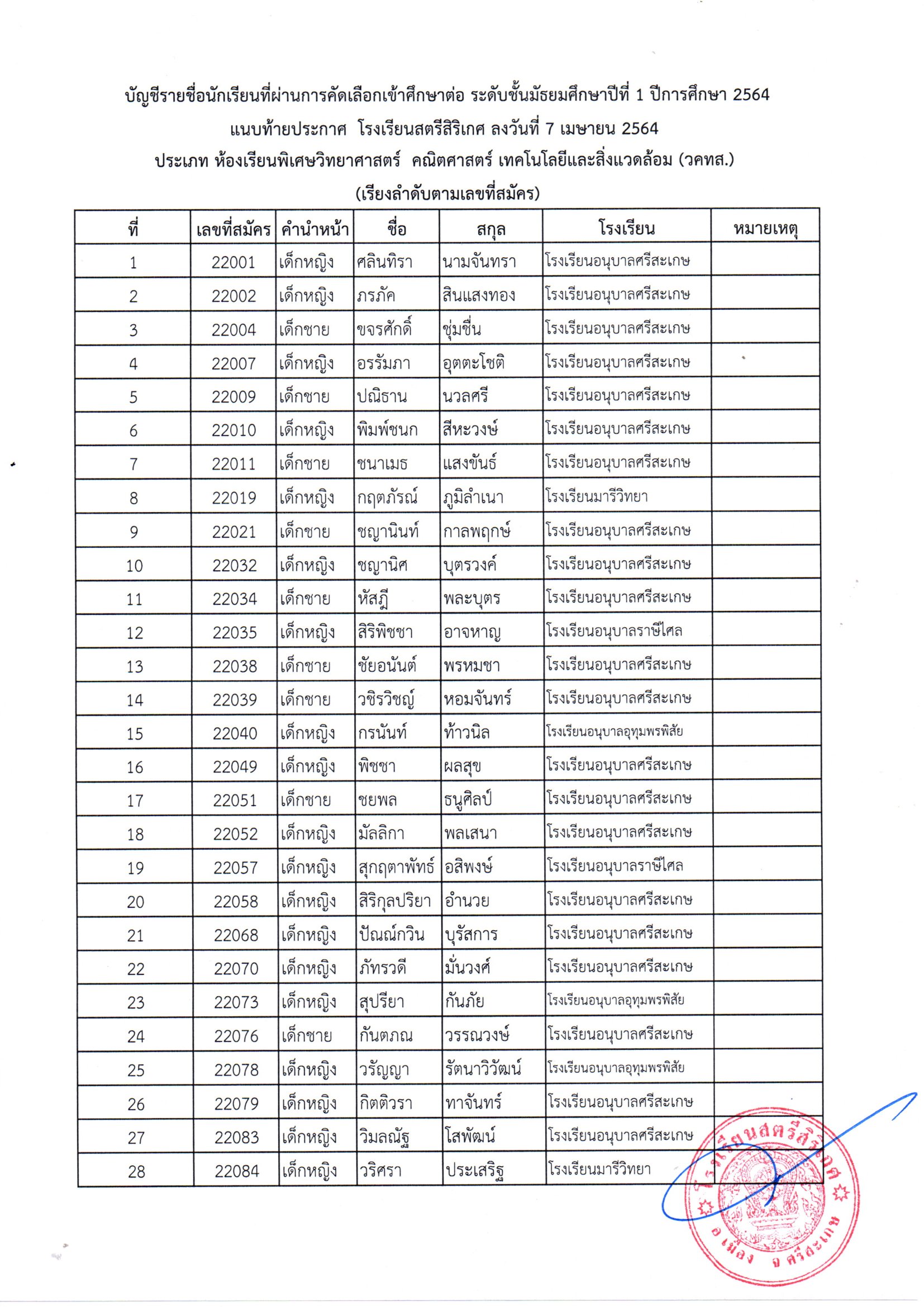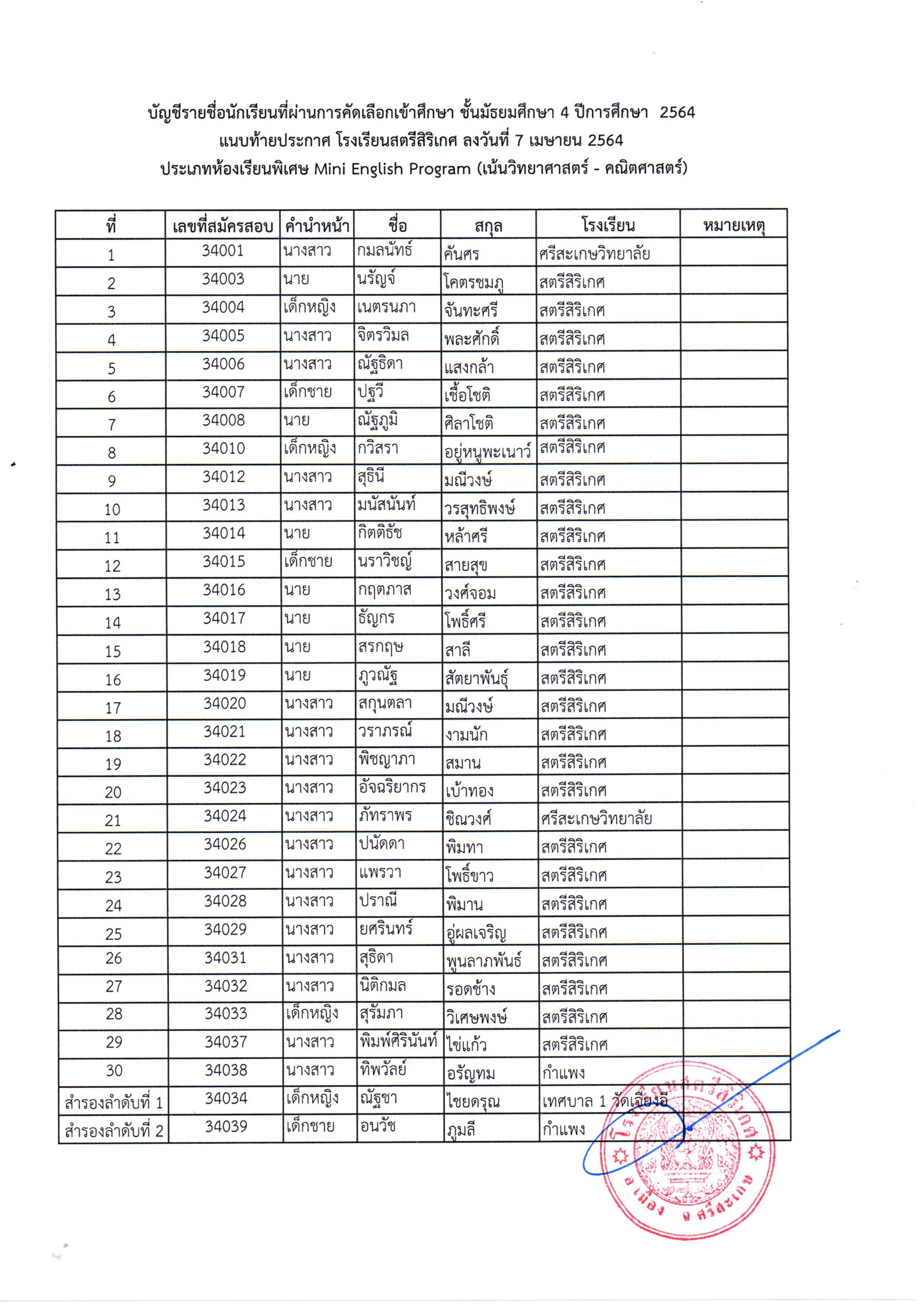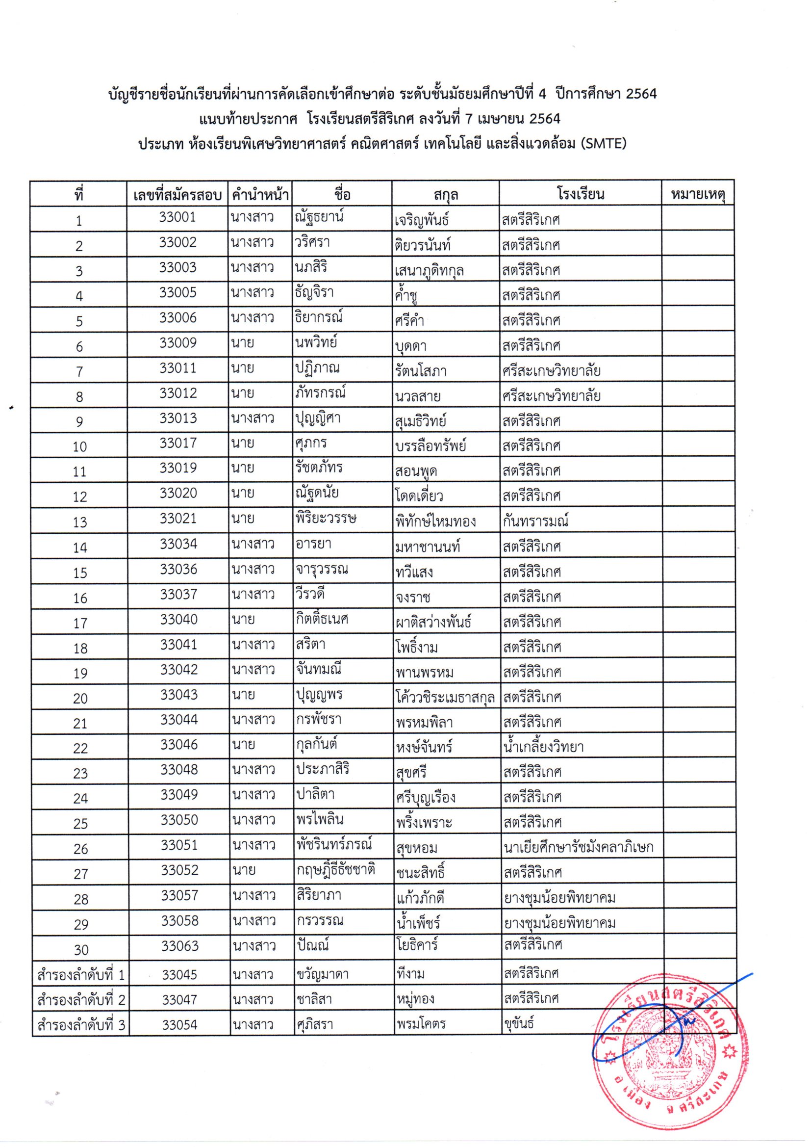 โรงเรียนสตรีสิริเกศ อำเภอเมือง จังหวัดศรีสะเกษ