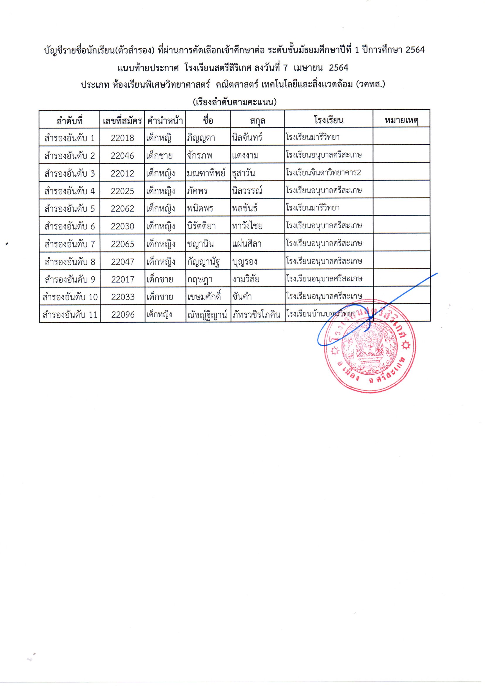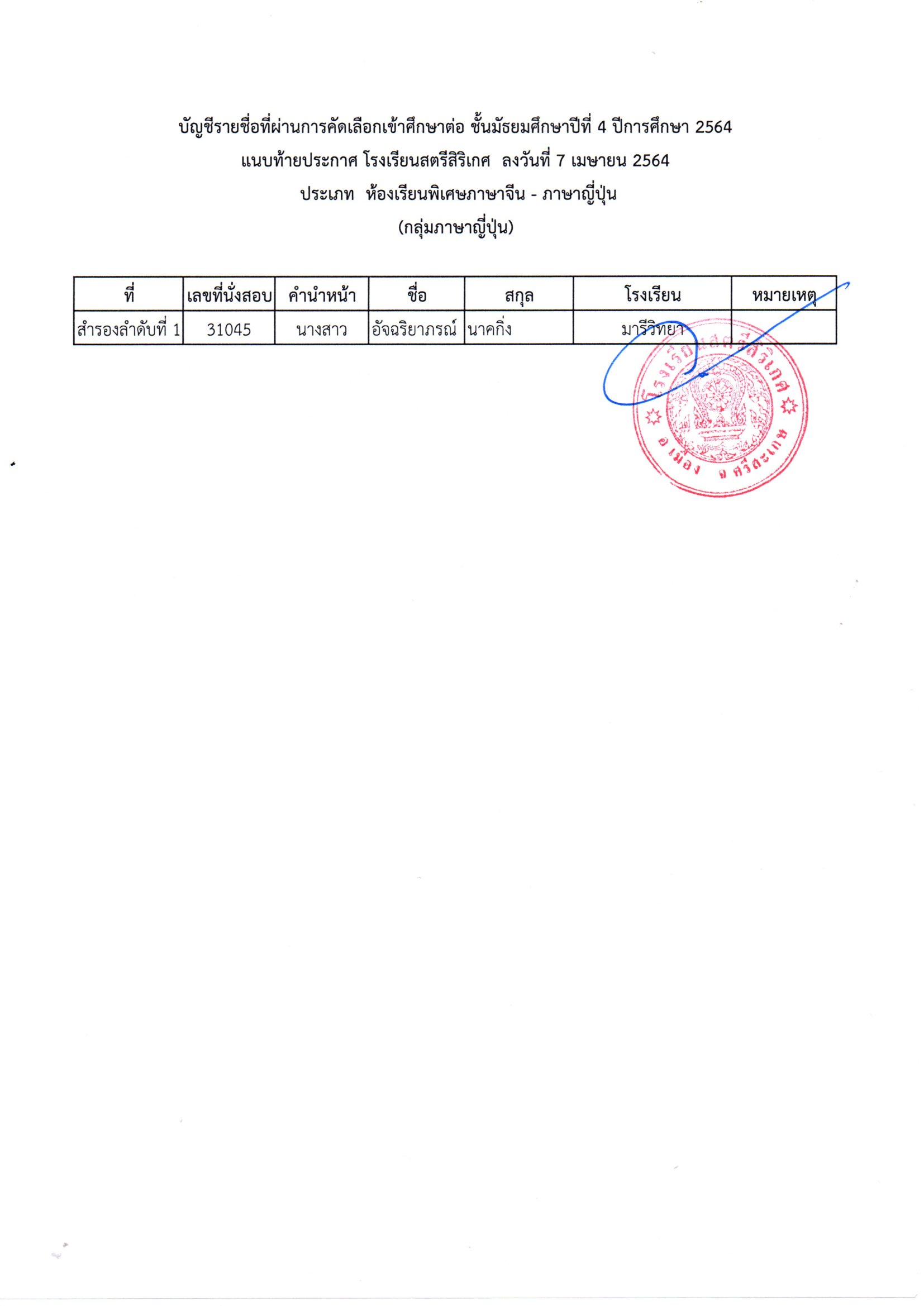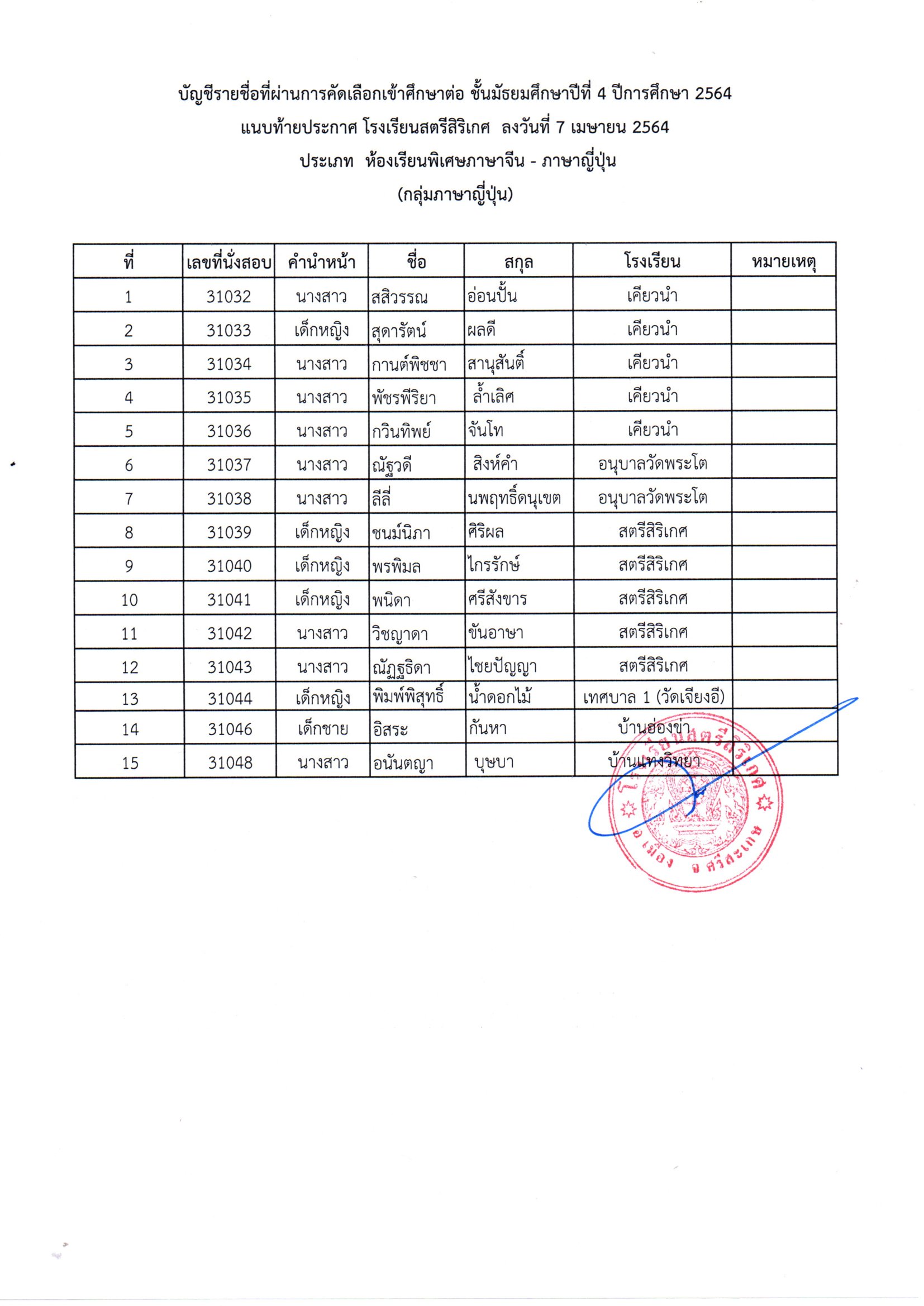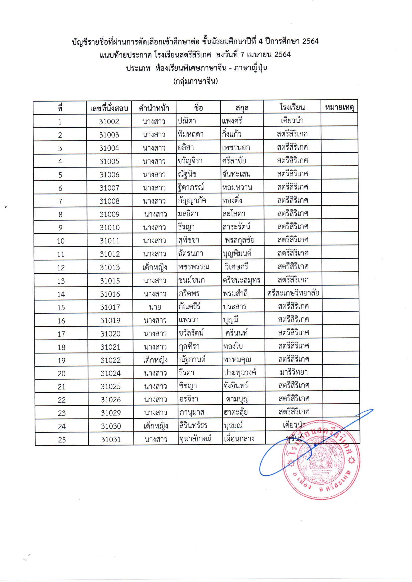 โรงเรียนสตรีสิริเกศ อำเภอเมือง จังหวัดศรีสะเกษ