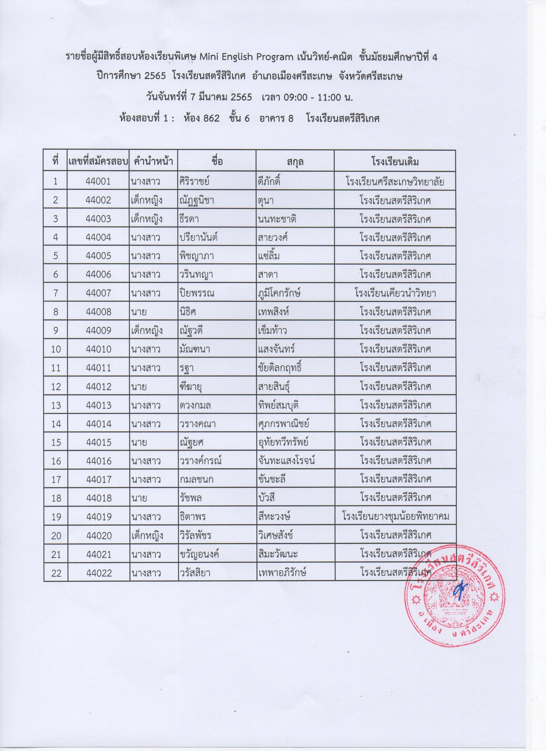 โรงเรียนสตรีสิริเกศ อำเภอเมือง จังหวัดศรีสะเกษ