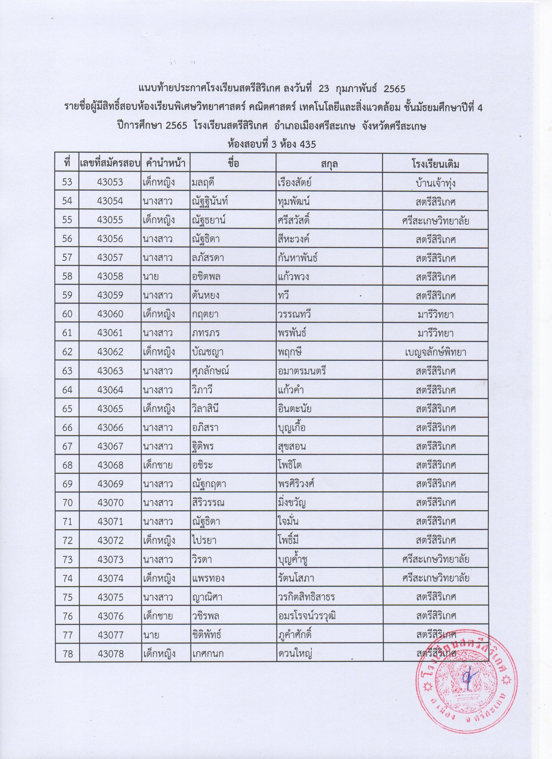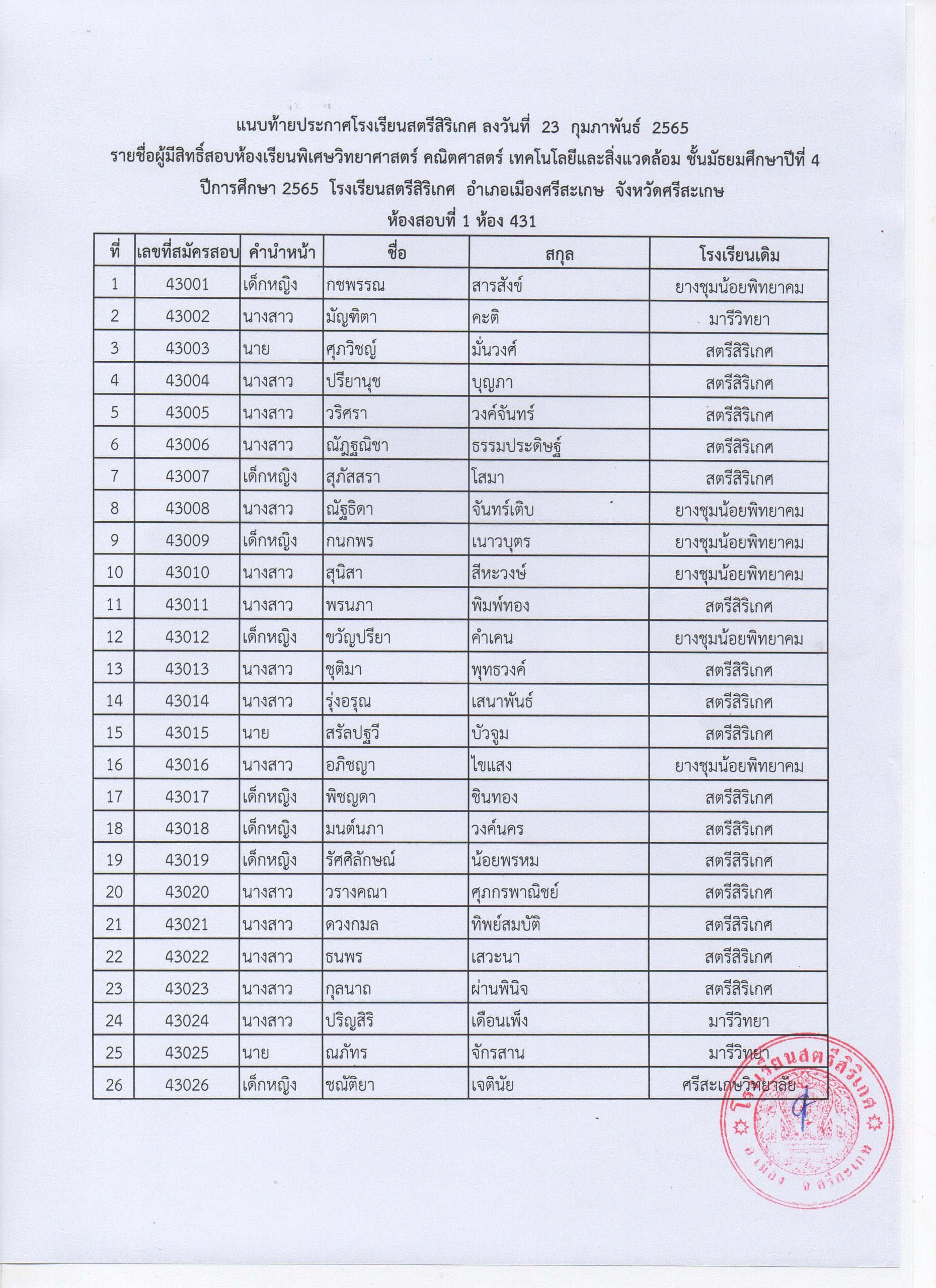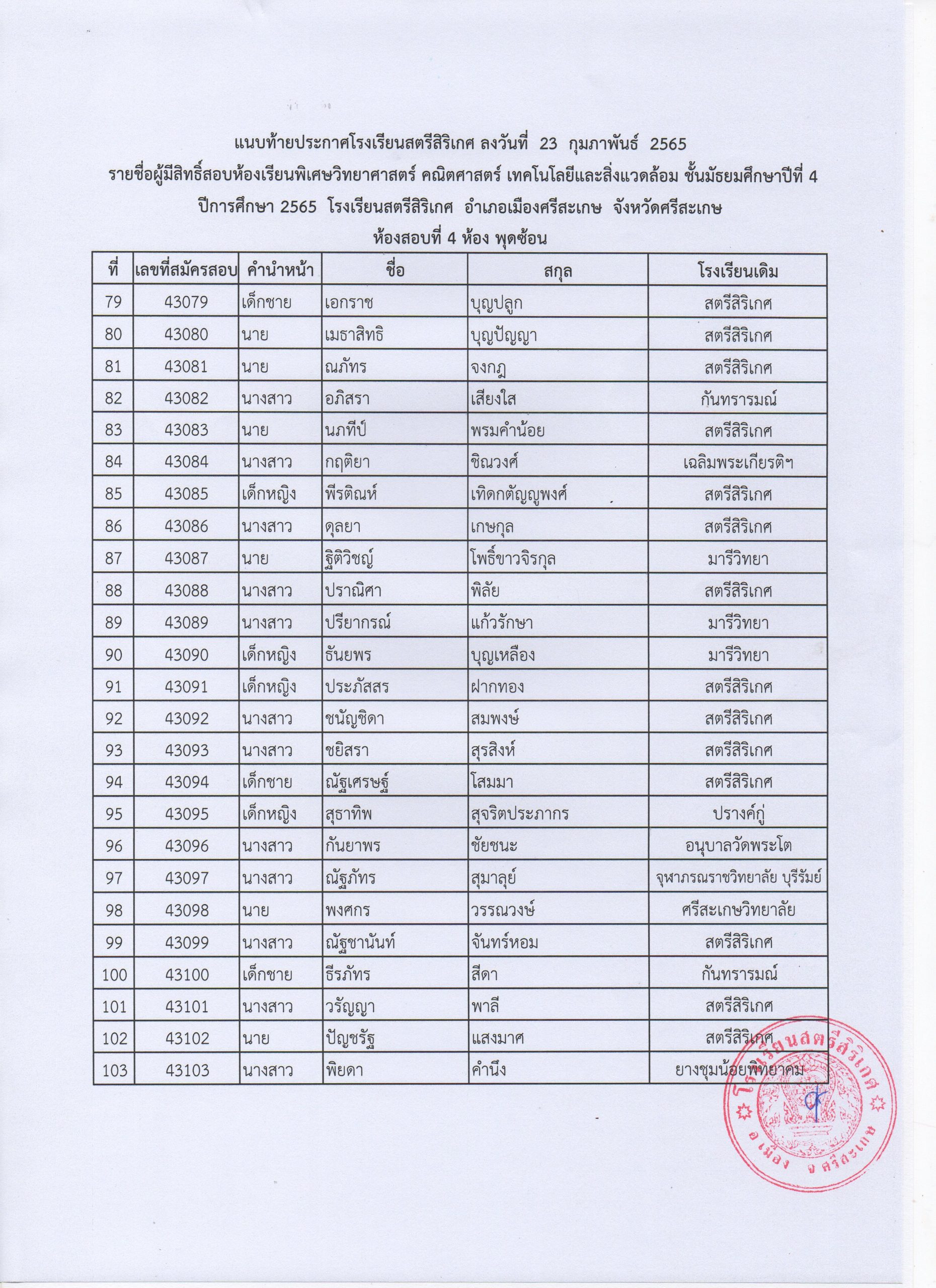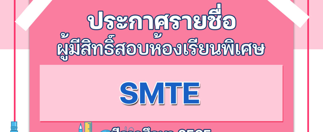 ประกาศรายชื่อผู้มีสิทธิ์สอบคัดเลือกเข้าศึกษาต่อระดับชั้น มัธยมศึกษาปีที่ 4 ปีการศึกษา 2565 ห้องเรียนพิเศษ SMTE