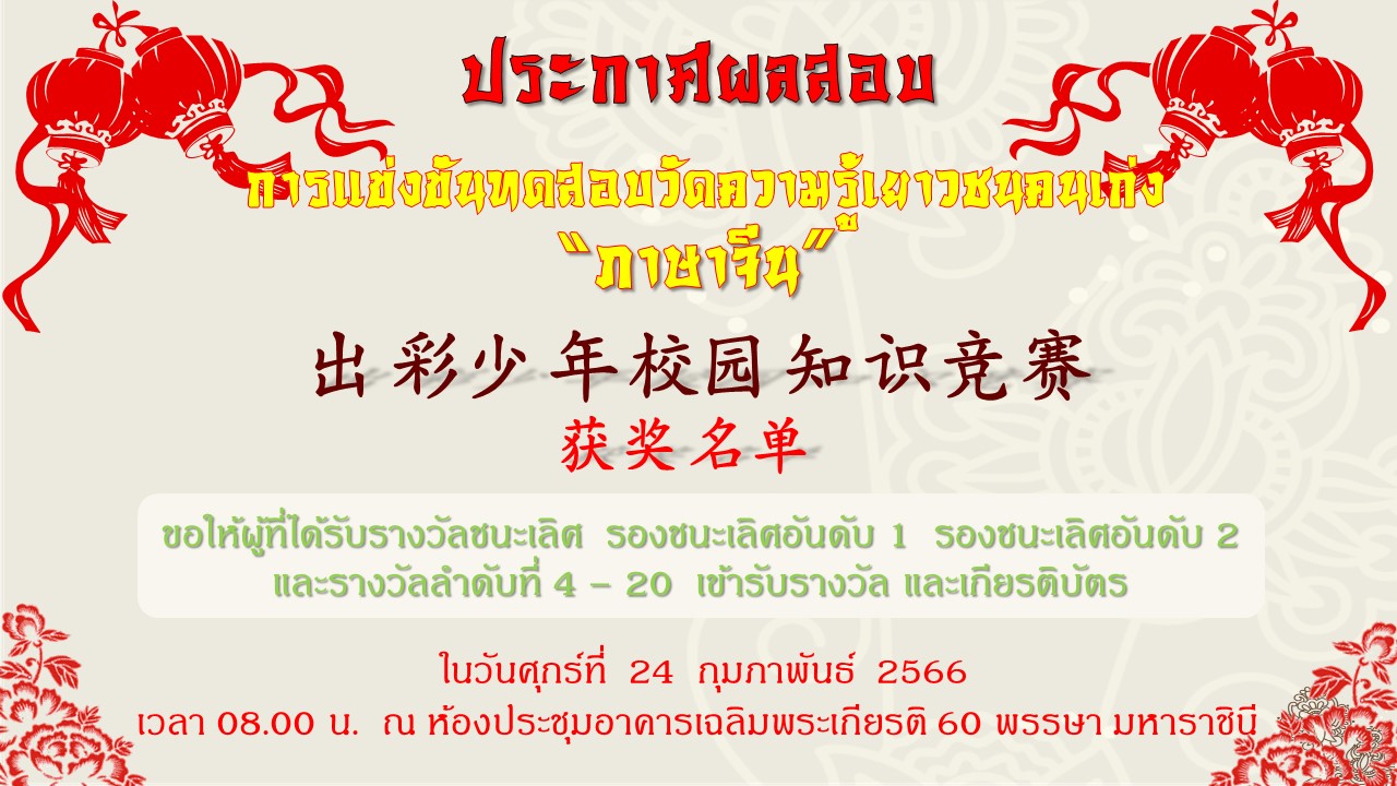 📌ประกาศผลการทดสอบเยาวชนคนเก่งภาษาจีน ระดับมัธยมศึกษาตอนลาย ปีการศึกษา 2565