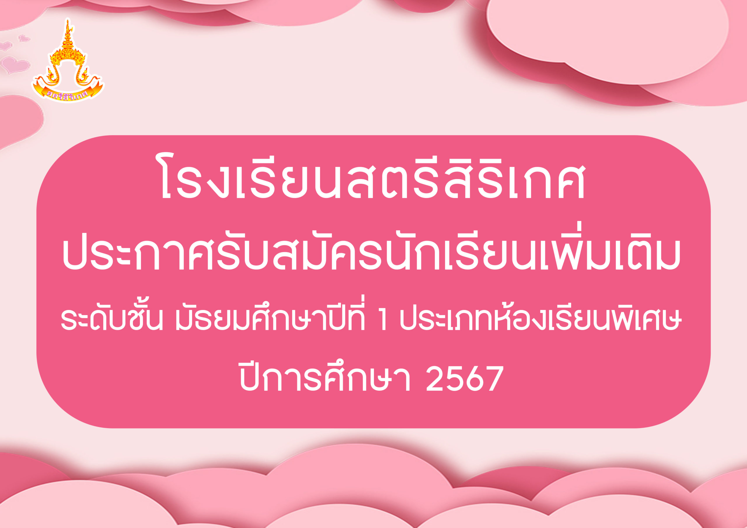Previous Post: ประกาศโรงเรียนสตรีสิริเกศ เรื่อง แจ้งนักเรียนลำดับสำรองรายงานตัวเข้าศึกษาต่อ ชั้นมัธยมศึกษาปีที่ 4 ปีการศึกษา 2567 ประเภทห้องเรียนพิเศษ