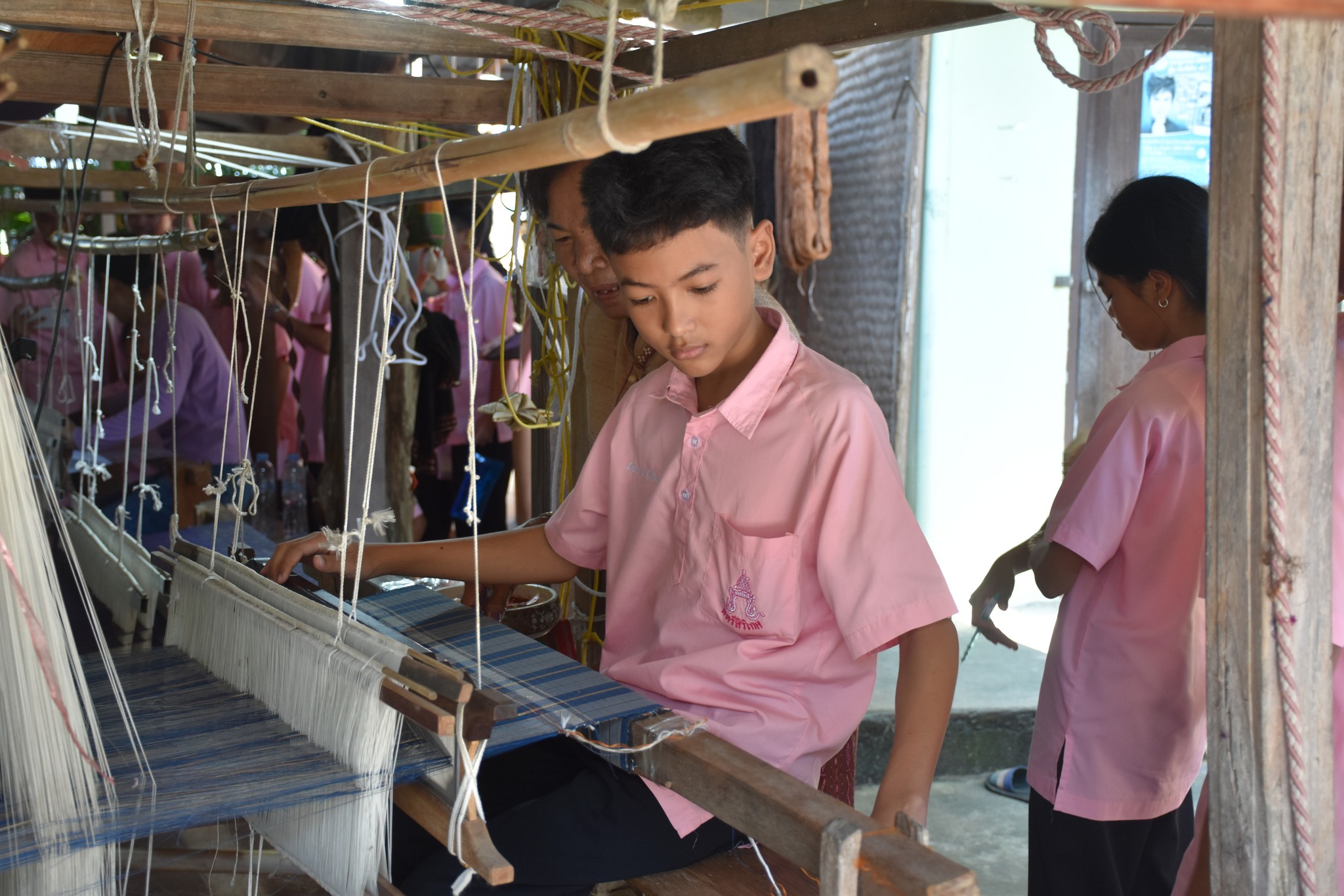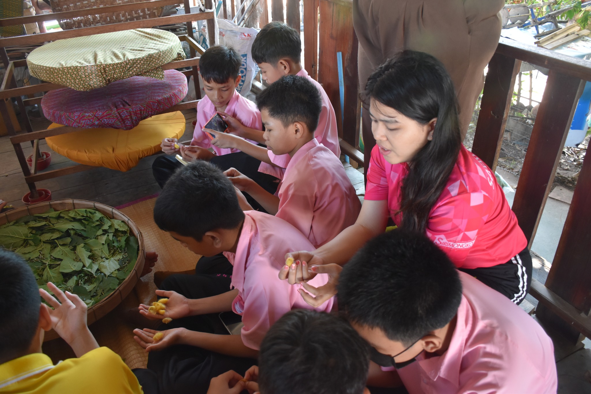 วันพฤหัสบดีที่ 15 สิงหาคม พ.ศ. 2567 นักเรียนระดับชั้นมัธยมศึกษาปีที่ 1/12-13 และ ชั้น ม.3/1-2 ศึกษาดูงาน ณ กลุ่มสตรีทอผ้าไหมบ้านหัวช้าง ตำบลหัวช้าง อำเภออุทุมพรพิสัย จังหวัดศรีสะเกษ นำโดยวิทยากร นายสิทธิศักดิ์ ศรีแก้ว ตามกระบวนการจัดการเรียนรู้บูรณาการ SMT