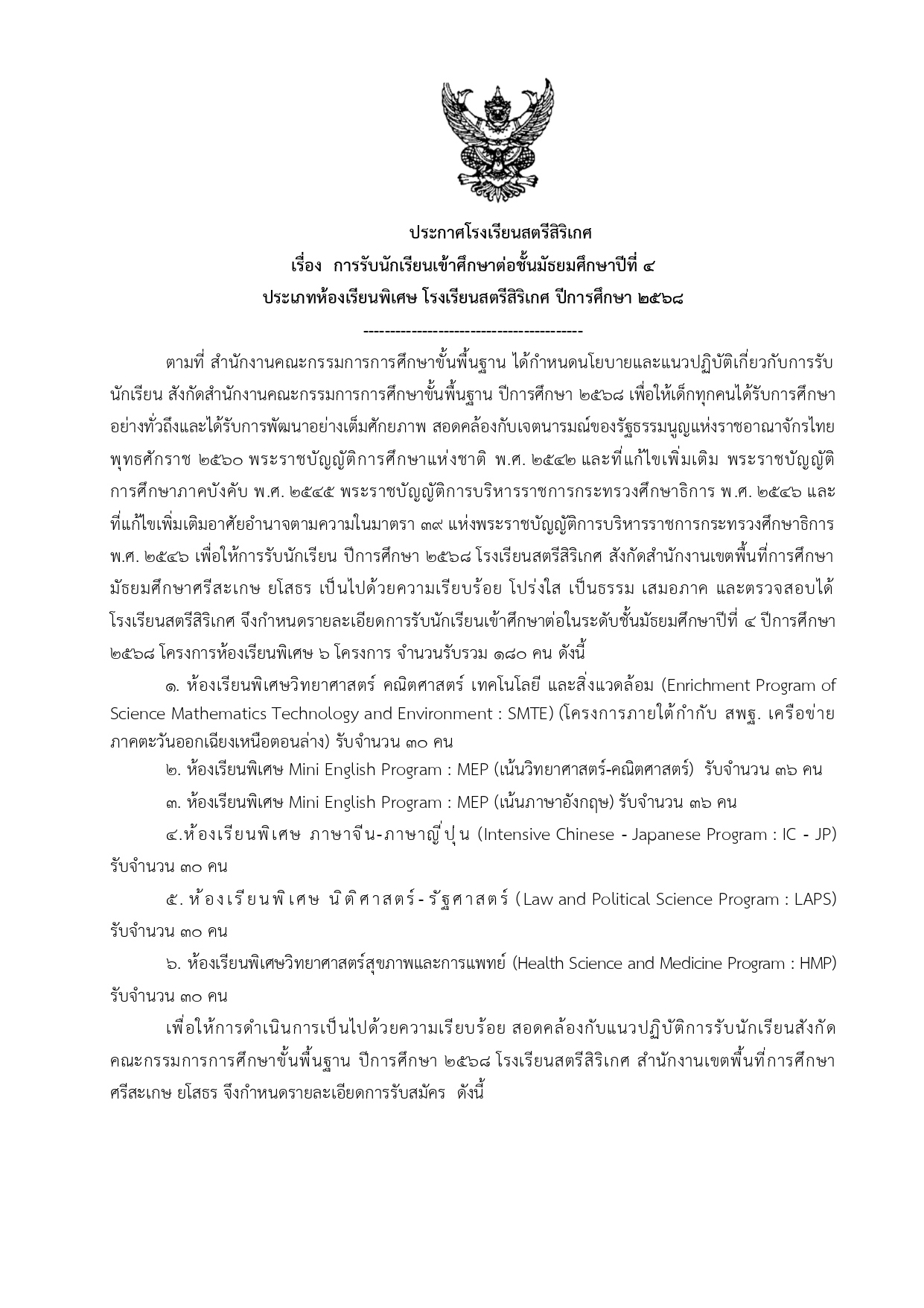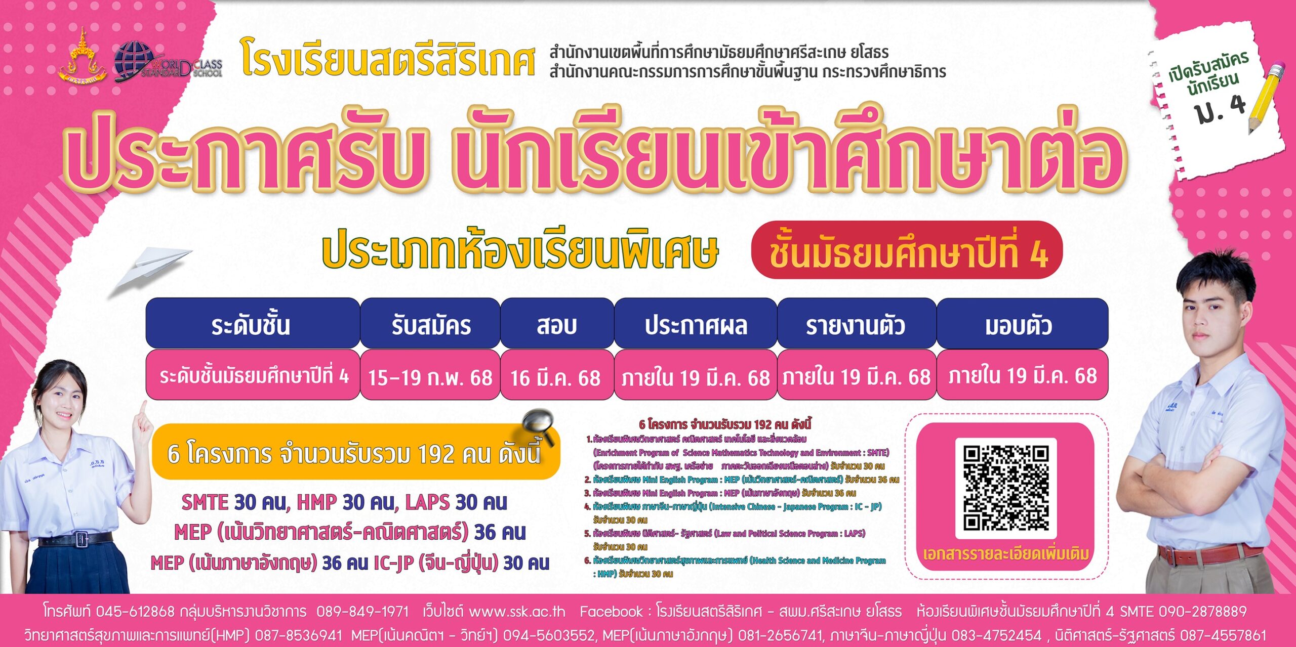 💬 Facebook: โรงเรียนสตรีสิริเกศ – สพม. ศรีสะเกษ-ยโสธร