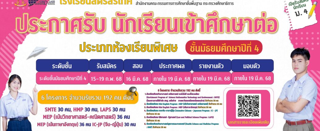📌 ห้องเรียนพิเศษ ชั้นมัธยมศึกษาปีที่ 4 และหลักสูตรที่ตอบโจทย์ทุกความต้องการ