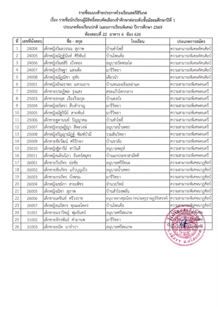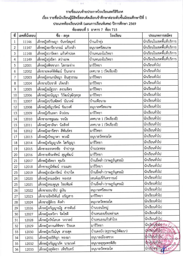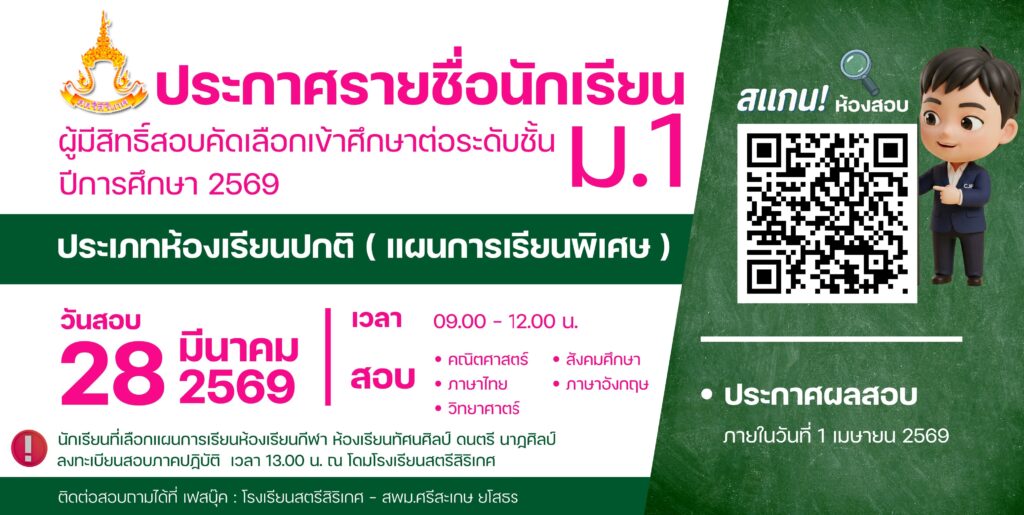 ðŸ“ĢâœĻ āļ›āļĢāļ°āļāļēāļĻāļ›āļĢāļ°āļāļēāļĻāļĢāļēāļĒāļŠāļ·āđˆāļ­āļœāļđāđ‰āļĄāļĩāļŠāļīāļ—āļ˜āļīāđŒāļŠāļ­āļšāļ„āļąāļ”āđ€āļĨāļ·āļ­āļāđ€āļ‚āđ‰āļēāļĻāļķāļāļĐāļēāļ•āđˆāļ­ āļĄ.1 āļ›āļĩāļāļēāļĢāļĻāļķāļāļĐāļē 2569 âœĻðŸ“Ģ
