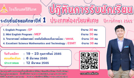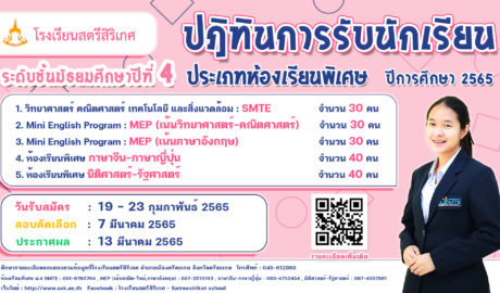 ประกาศโรงเรียนสตรีสิริเกศ เรื่อง การรับนักเรียนเข้าศึกษาต่อ ม.4 ประเภทห้องเรียนพิเศษ ปีการศึกษา 2565