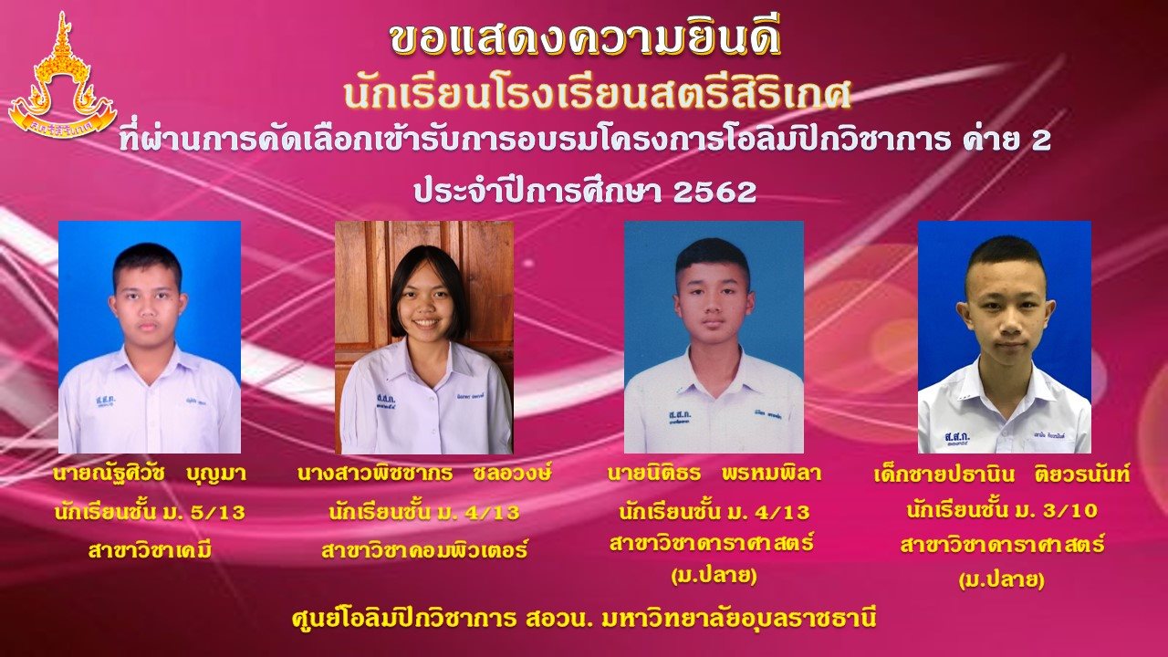 ขอแสดงความยินดีกับนักเรียนที่ผ่านการคัดเลือกโอลิมปิกวิชาการค่าย 2