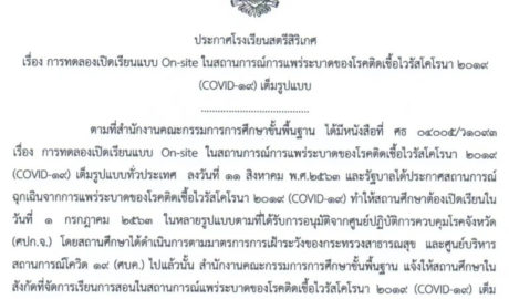 ประกาศโรงเรียน เรื่อง การทดลองเปิดเรียนแบบ Onsite เต็มรูปแบบ