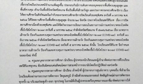 ด่วนที่สุด ประกาศโรงเรียน เรื่อง มาตรการเฝ้าระวัง ป้องกันและควบคุมการแพร่ระบาดของโรคติดเชื้อไวรัสโคโรนา 2019 (COVID-19) ระลอกใหม่
